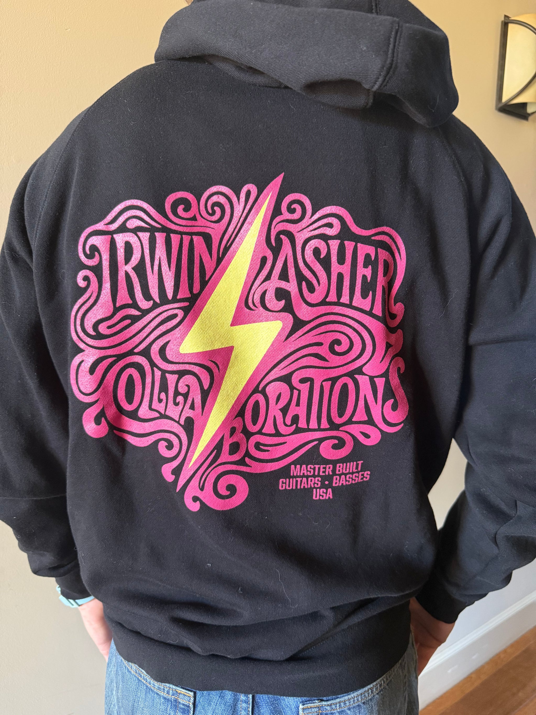 The Official Asher Irwin Collaborations Zip Hoodie celebrates the partnership between master guitar builders Bill Asher and Doug Irwin. Honoring the iconic guitars made famous by Jerry Garcia, this collaboration blends classic craftsmanship with new designs inspired by the era. It’s a tribute to legendary tone, timeless style, and the spirit of innovation.