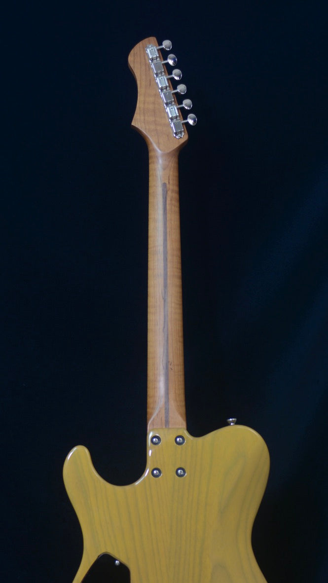 The T Deluxe ™ is one of the most versatile and loved hybrid Tele style designs created by Bill Asher and inspired by Leo Fenders first Tele prototype. While Asher set out to expand the design to enhance all the classic tones with more versatility - offering more sustain, and an array of tonal options for Blues, Rock, Jazz, and Country. The off-set body shape has great balance and a more ergonomic feel. Asher's soft V neck shape with rolled shoulders has players praising its comfort and playability.